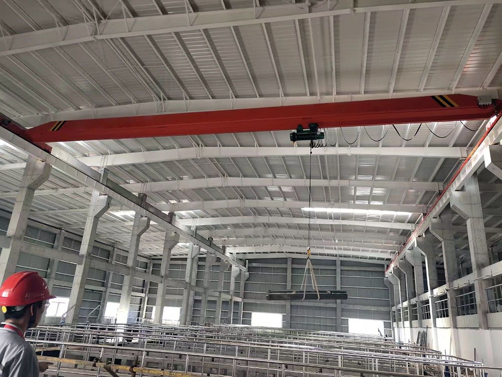 單梁橋式起重機(jī)是橫架于車間、倉(cāng)庫(kù)和料場(chǎng)上空進(jìn)行物料吊運(yùn)的起重設(shè)備。由于它的兩端坐落在高大的水泥柱或者金屬支架上,形狀似橋。單梁橋式起重機(jī)的橋架沿鋪設(shè)在兩側(cè)高架上的軌道縱向運(yùn)行,可以充分利用橋架下面的空間吊運(yùn)物料,不受地面設(shè)備的阻礙。它是使用范圍廣、數(shù)量多的一種起重機(jī)械。